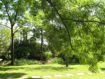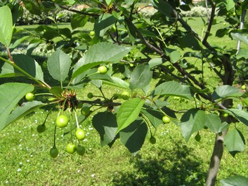 et les grands arbres nous offrent un parasol végétal.....et le griottier nous promet une bonne récolte.