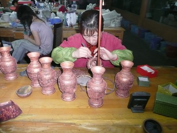 Comme l’indique leur nom, les cloisonnés consistent à séparer le support émaillé en segments de différentes grandeurs en traçant des dessins à l’aide de fil d’argent ou de fines lamelles de métal.