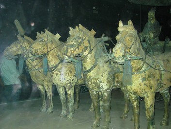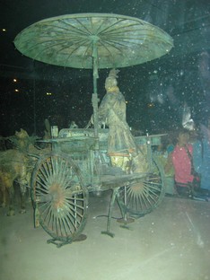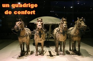 Pas d'éclairage pour photographier le char personnel de l'empereur tiré par quatre chevaux de bronze.