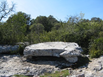ur le parcours, le dolmen de la Table des Turcs……………plus loin le menhir dit « LA PIERRE PLANTEE ».. C’est le plus haut du Languedoc et probablement même de tout le Sud-Est avec près de six mètres de haut………