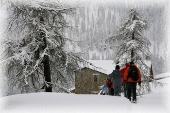 Moi, je ne suis pas assez sportive pour descendre avec eux dans un train d’enfer……..Alors je m’étais inscrite aux sorties avec les raquettes sous la direction d’un moniteur amoureux des ses