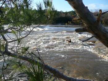 La Cèze roulait des eaux boueuses à grand bruit.